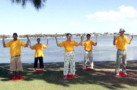 在一个风和日丽的星期六上午,西澳法轮功学员应邀到海滨小镇曼都拉一年一度的地方盛会螃蟹节表演功法。