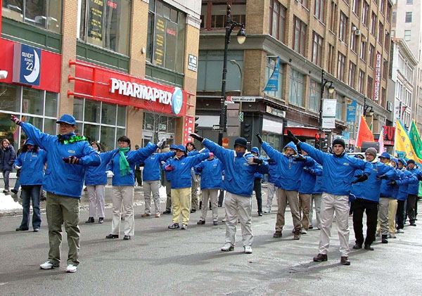 加拿大皇家骑警的马队走在游行队伍的最前面,牵引着长长的游行方队,走过市中心的圣-凯萨琳大街(St-Catherine)。虽然春寒料峭,大街的两旁,依然人山人海。魁北克省省长让•夏礼(Jean Charest)、蒙特利尔市长谭保利(Gérald Tremblay)、新任自由党主席迪昂(Stéphane Dion)及魁省几大党的首领均出现在游行队伍中。
