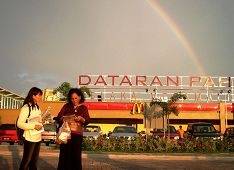 ![]() 法轮功学员讲真相时,一道美丽的彩虹出现在天边 |