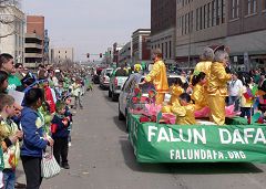 圣派翠克节大游行 堪萨斯法轮功学员传递真相(图)