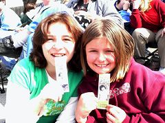 拿到洪扬法轮大法书签的人们真开心