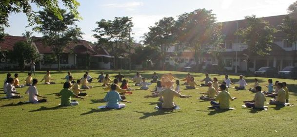 ![]() 学法营期间,法轮功学员们集体炼功 |