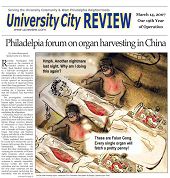 费城大学城评论报于三月十四日头版发表记者艾莎·莫梅德的文章“费城关于中国器官摘取研讨会”。