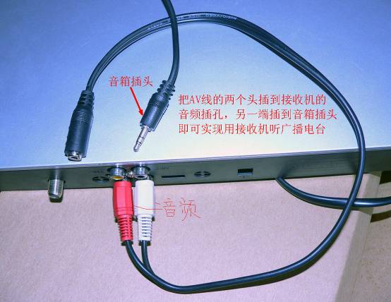 (这里要说明的是,最简单的方法就是直接打开电视,用电视的音箱听收音机,就是有点儿废电。还有其它办法,这里只说方便的。)