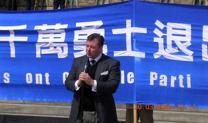 会上,前中国驻加使馆人员家属张继延支持两千万中国民众脱离中共党团组织的发言,引起加主流媒体的关注。