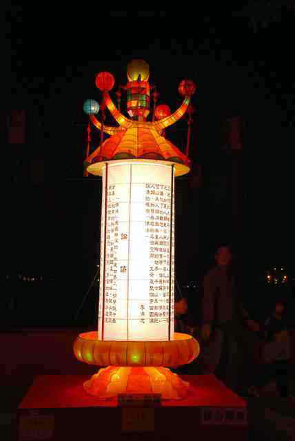 在嘉南平原广阔的“台湾灯会”会场上,一片灿烂灯海,天空繁星点点,参观人潮汹涌,一片繁荣升平的热闹景象。一位站在法轮功学员制作的“论语”花灯前久久不去的老人,赞叹着:“我从来没有见过这样的花灯,太美妙了,站在这里就是有种说不出来的很舒服的感觉。”