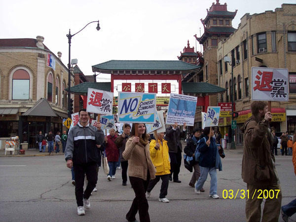 二零零六年底刚刚被美国政府从泰国辗转营救到芝加哥,来自中国大陆沈阳的徐敏在集会上揭露了中共对其一家五口的迫害真相。她说:“七年前,我在中国大陆,因为我坚信法轮大法,不肯放弃修炼,五次被非法关判入狱,儿子三次入狱。我在最后一次牢狱中绝食二十六天,抗议邪党对我的迫害。然而邪党的本性就是无视人的尊严,剥夺了我天赋信仰的自由,因怕我死在牢里,将奄奄一息的我扔了出来。我只有选择了逃亡,在联合国人权组织的帮助下,流亡到泰国,终和家人团聚。”“今天站在这里,我希望用我们家的经历让更多的人认清共产邪党的本质,鼓励更多的人们脱离它。”
