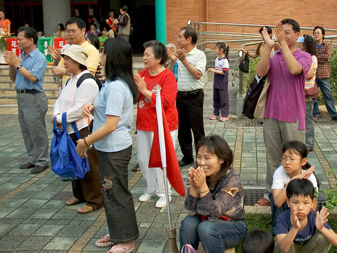 这几次的表演,都是在平常日的晚间或是需要小弟子在非常早起的情况之下演出。像是三月一日星期四,腰鼓队的小弟子在读完整天的学校课程四点钟放学后,就必须放下书包,马上由北县各地家中赶赴台北市新生北路,齐聚参加当天晚间七点由「银发族协会」举办的晚会演出。在一百多位的银发族长辈专注的眼神中,超过三十位的小弟子为他们击鼓表演,现场观众莫不报以热烈的掌声,也对法轮大法产生浓厚的兴趣。