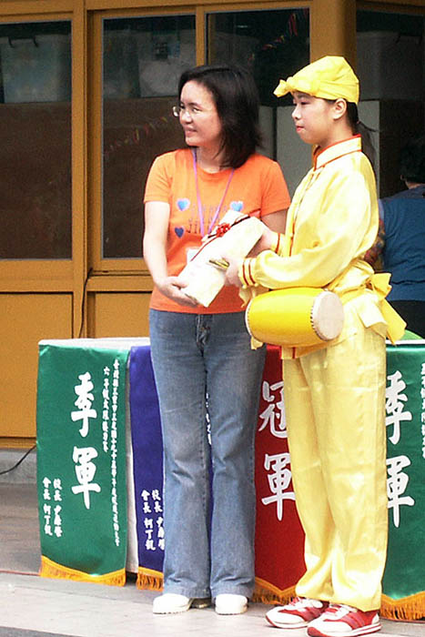 ![]() 三光国小的校庆,邀请明慧学校腰鼓队到校表演后颁奖 |
