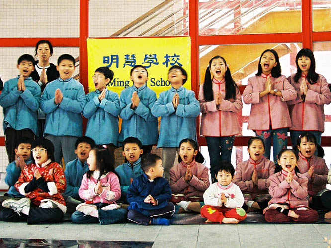 ![]() 观众为明慧学校小弟子的演出喝彩 |