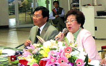 ![]() 台湾副总统吕秀莲(右)表示捍卫人权没有国籍的分别 |