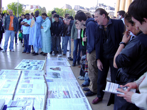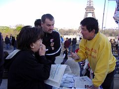 巴黎法轮功学员除了向人们传递法轮功美好和慈悲的信息外,同时也让法国民众、来自世界各地的游客、还有中国大陆的游客们知道,八年来,中共持续对法轮功学员的残酷迫害。一幅幅触目惊心的图片展示着惨烈的故事,特别是民众们被真相展板上揭露的中共活体摘取法轮功学员器官的罪行所震惊。从他们的表情中可以知道,这个星球上最残忍、残酷的罪恶令人们发自内心的愤慨。了解真相的人们有的签名支持法轮功抗议中共的迫害,有的前来了解更多的真相,有的中国人也在不停的拍摄这些真相。