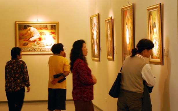 ![]() 民众仔细观赏作品 |
