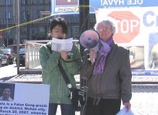 二零零七年四月十四日,芬兰部份法轮功学员又来到赫尔辛基火车站旁讲真相,告诉人们中共恶党迫害法轮功的暴行一刻也没有停止过。