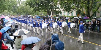 在美国加州戴维斯市“野餐节”游行长长的队伍中,当法轮大法美西天国乐团的队伍走近主席台时,观众中响起了欢呼:Here comes Falundafa! 法轮大法来了! “你们是最棒的!”、“从来没听过”、“真好听!”“法轮大法,法轮大法…”,来自北加州近百名法轮功学员组成的“天国乐团”,四月十四日在加州大学戴维斯分校 的“野餐节”游行中,给上万名观众带来惊喜。