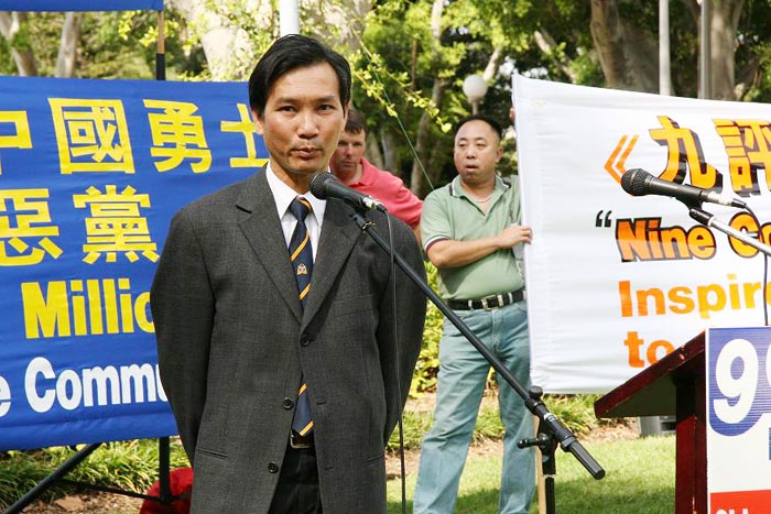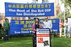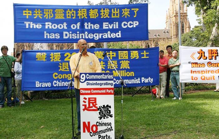 集会上,悉尼退党服务中心的高先生表示:两千万中国勇士冲破封锁,公开宣布退出中共邪党,中共邪灵的根都被拔起来了。