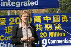 世界和平联盟(Universal Peace Federation)的代表Tracy DeGeer在集会上发言表示:和平和非暴力的抗争运动是对象中共这样的暴政最有力的抵制,心灵的觉醒和自由是任何暴力都无法改变和镇压的。