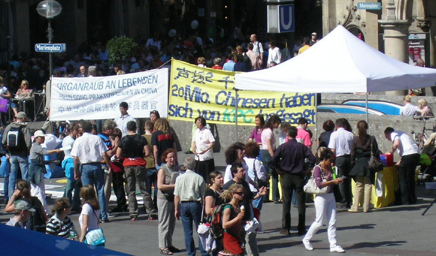 ![]() 声援退出中共的活动在德国慕尼黑的圣玛利亚广场上举行 |