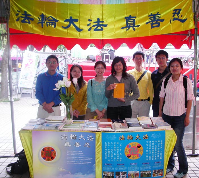今年交大法轮大法社的校庆摆摊,吸引了许多来往民众驻足询问,当中有的是陪家人来学校的妈妈;有的是年轻的小女孩;有的则是白皮肤的外国人,而且有的表示要来学炼法轮功;有的则是主动为身边的朋友述说着法轮功学员遭中共残酷迫害的真相。这次摆摊比较特别的是,学员们以“卖书”的方式,在摊位上展示法轮大法书籍《转法轮》、大纪元系列社论《九评共产党》,以及许多有关科学、预言、植物感知、轮回、迫害真相、维权等书籍供来往的人们观阅,购买。
