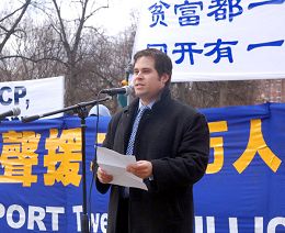 从事贸易工作的基格拉提(Steve Gigliott)先生曾在中国工作生活了三年,他的数位法轮功朋友在中国遭受了洗脑、酷刑,甚至被迫害致死,他本人因赴中国调查中共活摘法轮功学员器官一事遭中国便衣警察抓捕。他的亲身经历令许多在场民众感慨。