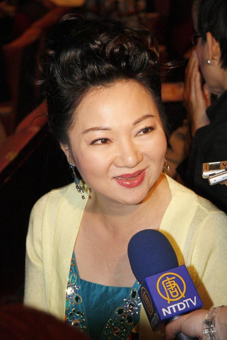 带着脚伤前来观赏「美国神韵艺术团」表演的京剧名伶郭小庄说,她看了这个演出很感动,特别是这些住在国外的年轻的舞蹈演员,能把中华传统的文化艺术介绍到国际,作为台湾的表演艺术者非常感谢他们的贡献。