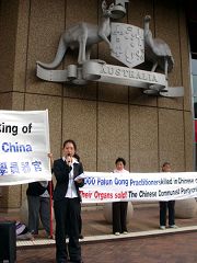 二零零七年四月十七日,澳洲纽省高等法院就法轮功学员李富英和谢焱起诉原广东省政法委书记、现任广东省委副书记,省政协主席陈绍基一案进行了聆讯开庭。