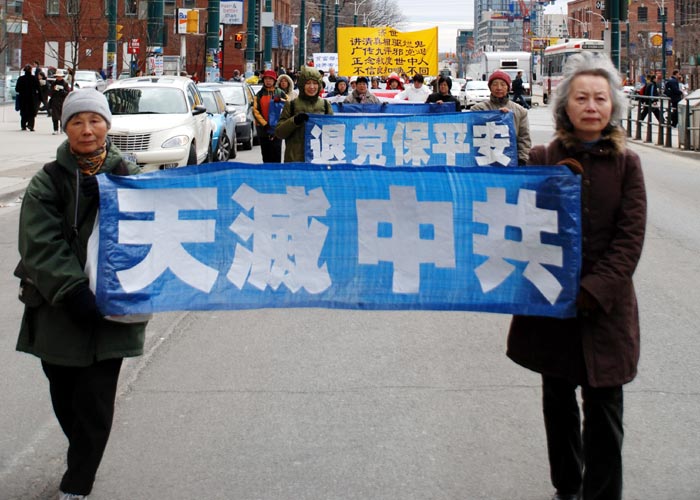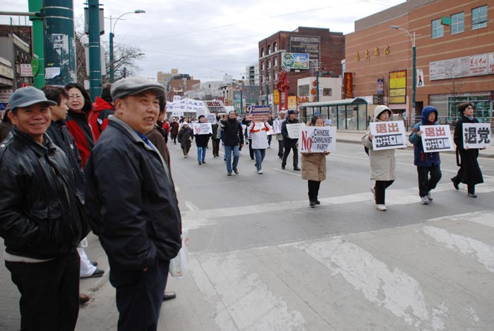 ![]() 声势浩大的退党游行引起路人的关注和兴趣 |