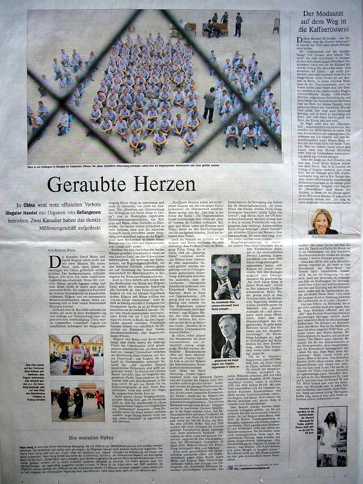 会议第二天,德国第三大日报“世界日报”(Die Welt)以整版篇幅,介绍了这两位加拿大人的调查结果。文章题为“被盗的心”。针对中共在二零零六年七月一日开始实行的反对器官交易的法律,文章引用加拿大独立调查员乔高的话:“在中国,在制定一个法律和实施一个法律之间存在了巨大的差异。”文章中披露,去年十一月,比利时国会议员帕特立克•万科鲁克思文(Patrik Vankrukelsven)打电话给北京的两所医院,说自己因病需要急性肾脏移植,两家医院马上表示能提供价值五万欧元的肾脏。而这个器官交易在去年七月份,即四个月以前在中国就应该被禁止了。可见法律的颁布并没有制止中国日益猖獗的器官买卖市场。