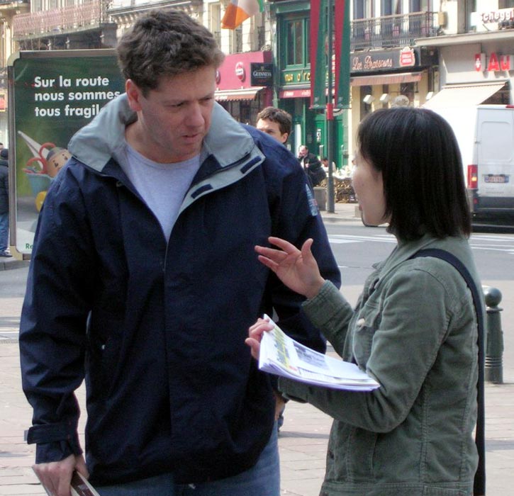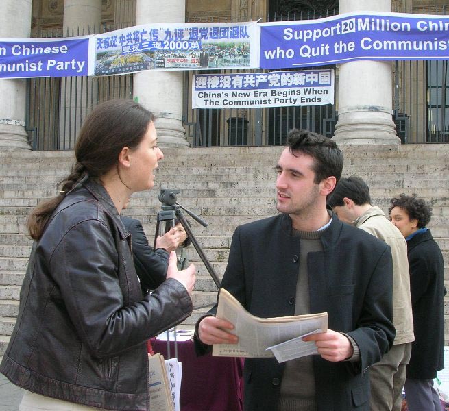 本地妇女莫妮卡接过信息资料说:我已经在互联网看到有关中国人退出中共的消息,因为我母亲每周都在看法语“大纪元”报纸,她把每周发生在中国的迫害消息告诉我,我也一直在关注着;和我的熟人朋友们谈论着;中共残害人民是有罪的;迫害必须停止。她在声援簿上郑重的签下自己的名字表示对人们退出中共的支持。