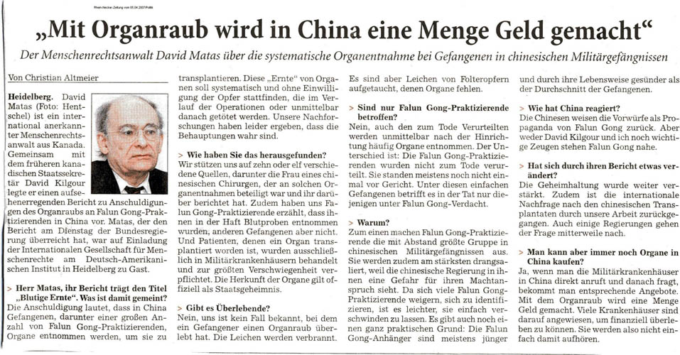 • 德国莱因内卡报:在中国--掠夺器官赚大钱(图)