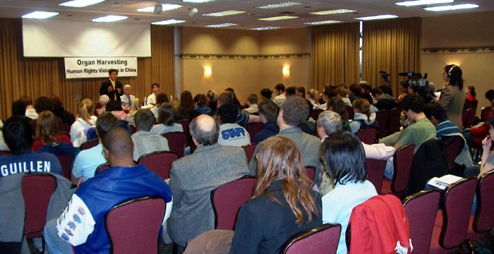 与会听众对中共活体摘取法轮功学员人体器官罪行感到震惊和愤慨。有听众问及西方国家政府对这一罪行的立场时,乔高说,经济利益的诱惑使一些西方国家在民主、自由、人权的问题上丧失了原则。