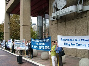 澳洲公民章翠英因修炼法轮功并为法轮功上访在中国曾被强行监禁八个月,在狱中受到酷刑折磨,身心都受到很大伤害。在澳洲政府和法轮功学员的共同努力下,章翠英于二零零零年十一月被营救回澳洲。二零零四年九月十五日,章翠英在纽省高院以群体灭绝罪和酷刑罪控告迫害法轮功的元凶中共头目江泽民及六一零办公室。