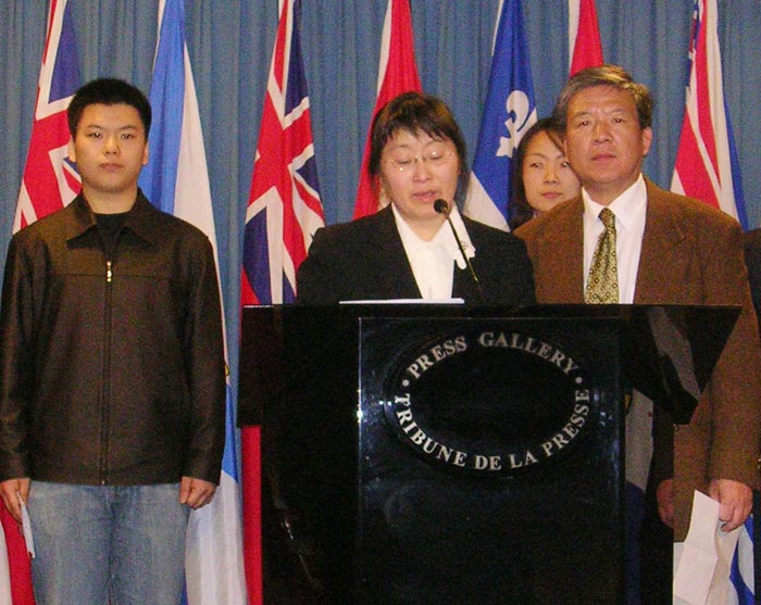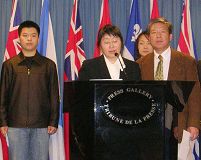 ![]() 十五个受害的加拿大家庭中的四位代表在新闻发布会上发言,讲述家人受中共迫害的遭遇 |