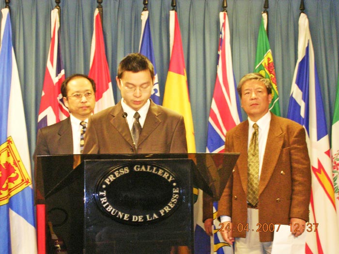 十五个受害的加拿大家庭中的四位代表在二十四日的新闻发布会上现身,支持法轮大法协会的声明。现住蒙特利尔的姚联女士的丈夫法轮功修炼者马剑是法国PCM泵业公司中国及北亚区总经理。据姚联女士说,马剑于二月二十八日在北京工作单位遭到十几名警察殴打并绑架,至今被非法关押。家属从北京警方得到的马剑被捕原因是“和法轮功学员有来往。”
