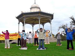二零零七年四月二十五日,澳洲的纪念澳纽军团公假日,南澳法轮功学员来到爱顿公园集体炼功,向来观看老兵游行的民众展示法轮大法的美好。