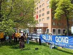 丹麦法轮功学员中使馆前纪念“四·二五”(图)