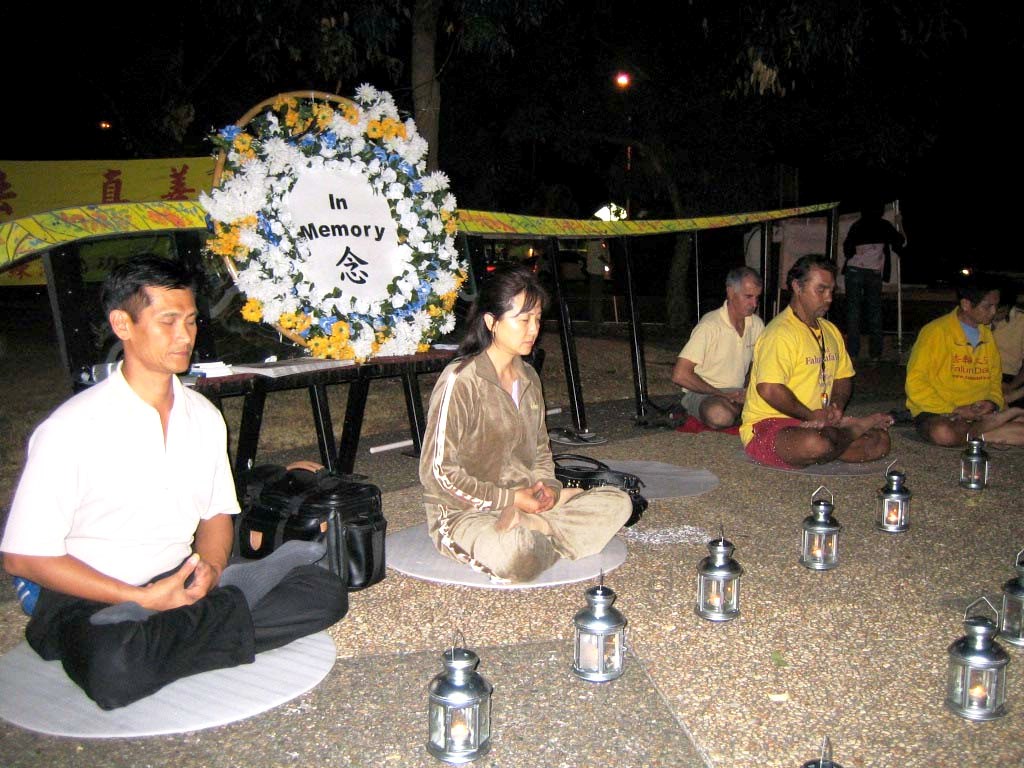![]() 法轮功学员们静坐及炼功,悼念被中共迫害致死的中国同修 |