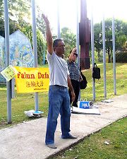 巴拿马有一个颇具规模的华人社区,但当地炼功人大都不是华人。这天来炼功的人主要是拉丁人和一个意大利人。当地只有一位法轮功学员祖籍中国,穆斯雷说。