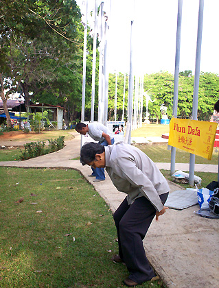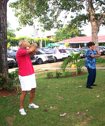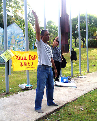 “法轮功没有一点坏处,”穆斯雷说。“我们没有宗教或政治目标 --- 只想做好人”。法轮功不是宗教团体,也不是政治运动,他说,法轮功没有会员制。人们来去自由,无需交费,无需承诺,无需签署任何表格。这个周四早晨,当巴拿马新闻社在帕克•奥马公园顺便走访他们时,有六个人在炼功,穆斯雷说约有十个人常来,但不是每天都来。