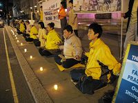 纪念“四·二五”,法轮功学员维也纳烛光守夜(图)