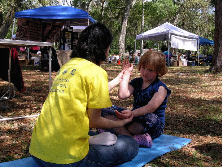 法轮功的展位也吸引了来报道地球日活动的记者。当地最大的报纸圣彼得斯堡时报(St. Petersburg Times)的记者在当天的报道中写道: