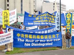 一位身在中国的杨小耕(译音)先生,通过网路电话的方式在本次集会上现场退出中共邪党,他说:“我是看了《九评》以后,发现被骗了十年,我们要退出这个邪党。”