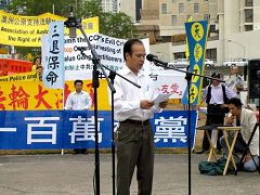 越南社区代表达克(Mr.Duc)在发言中向与会者诉说越南人曾经遭共产党迫害的悲惨经过。他指出,共产党利用谎言和欺骗的方式,逼的人们不敢说话,他说,能为正义站出来说话的人是受人尊敬的。他同时也鼓励大家一定要继续挺身而出,为人权及自由奋斗。曾出席在声援两百万人退出中共集会上的达克先生说,“上一次参加集会时,我当时预计到这时会有一千万人退党,但今天却已有两千一百万人,我相信中共很快就要垮台了!”