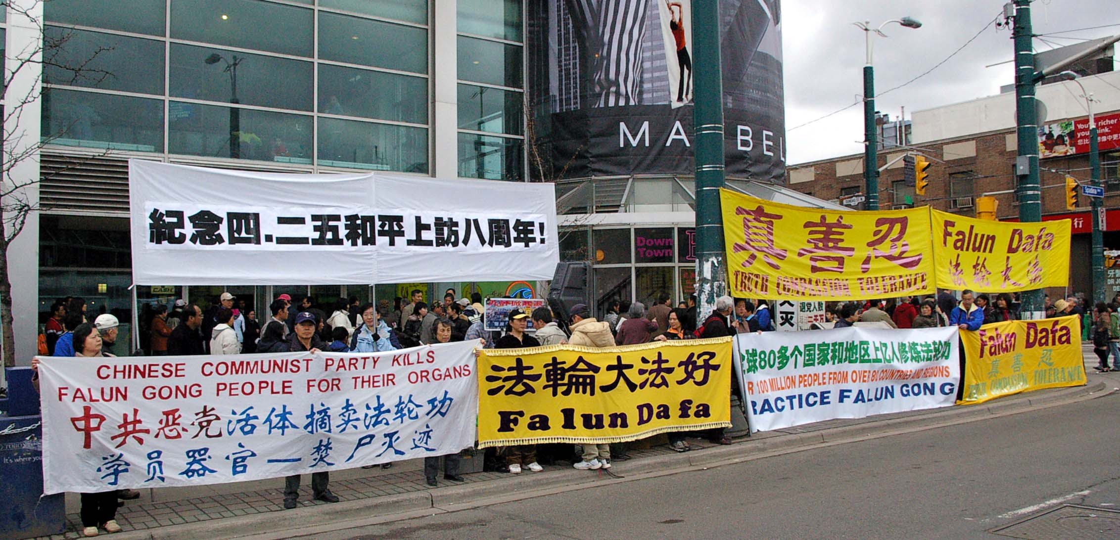 ![]() 加拿大多伦多法轮功学员在中区唐人街纪念“四•二五”,抗议中共迫害 |