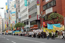![]() 声援退党游行从池袋出发穿过市区至高田马场,历时约两个小时。 |