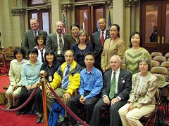 二零零七年五月九日上午,纽约州众议会在正式开始讨论法案之前,以鼓掌方式对前来拜访的法轮功学员表示欢迎和肯定。