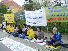 ![]() 在中使馆前抗议迫害、发正念 |