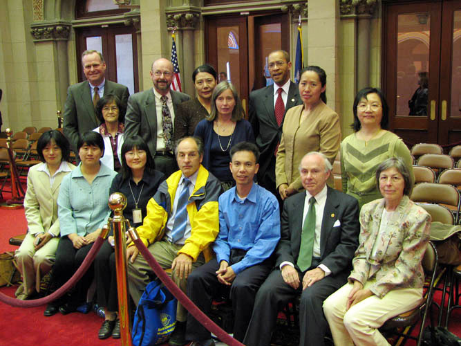 ![]() 纽约州众议员费茨帕翠克(后排左一)和本杰明(后排右三)与法轮功学员合影 |
