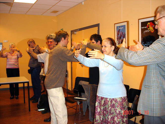 去年七月份列日市的“健身健康运动博览会”上,拉•鲁米尔(La Lumiere)社区中心的工作人员了解了法轮功,并与法轮功学员建立通讯联系。一个月前,社区安排了这次由学员介绍法轮功功法并教功。有近三十人来参加活动。