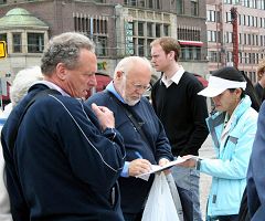 阿姆斯特丹是荷兰旅游胜地,这一天来自不同国家的游客目睹了中共的罪行,法轮功学员准备了十几种语言的大法真相资料来满足不同国家人的需要。他们一遍一遍的给人们讲述着许多在中国发生的故事。那一天每一位了解真相的人都感受到了震撼。一位中国人感慨的说,我在其它的国家也见到你们,你们真的了不起。